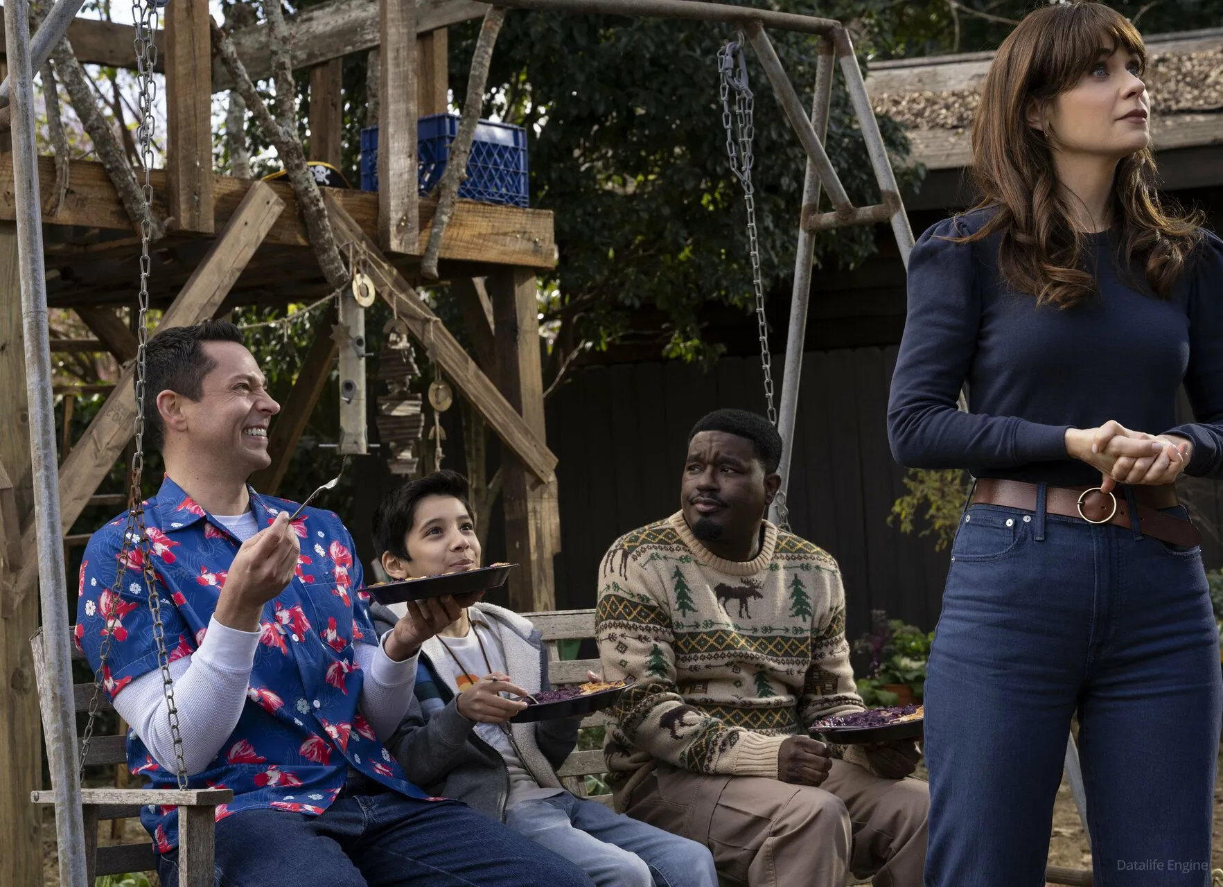 Зои Дешанель, Джемейн Клемент, Альфред Молина, Закари Ливай, Лил Рел Ховери, Рави Патель, Пит Гарднер, Таня Рейнольдс, Камилла Гуати, Риен Лонг, Бенжамин Боттани, Зеле Аврадопулос, Бостон Пирс, Салатиэль Мерфи, Бриско Де Поало